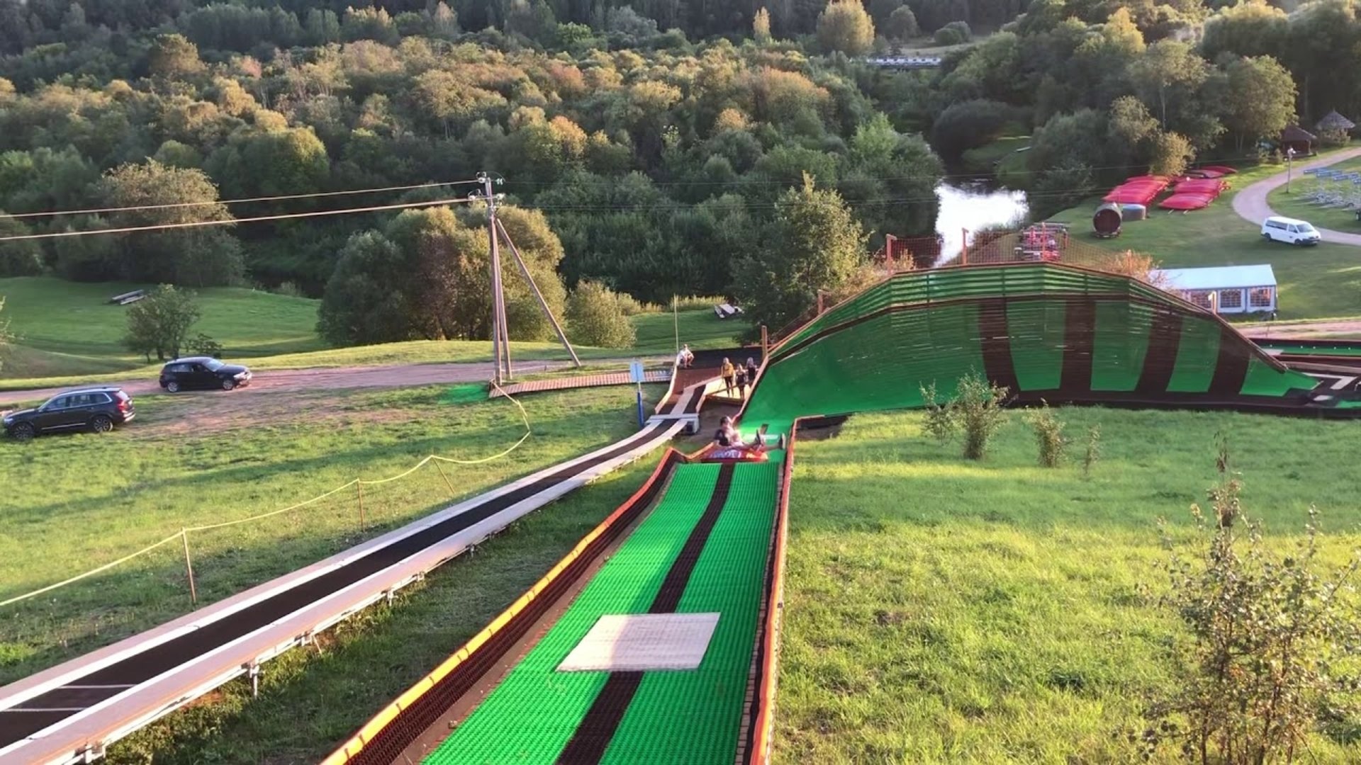 At the Adventure Hill, you can try tubing down two special tracks designed for both children and adults. It’s a great place for active recreation all year round. In summer, you can enjoy fast descents, while in winter, it offers fun snow activities. Nearby, there are rest areas with benches and gazebos for relaxation after active entertainment.