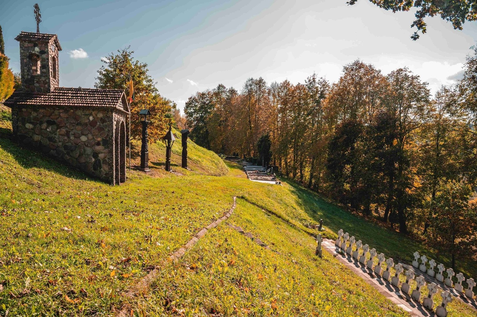 Chapel for partisans of Ariogala district – Unveiled in 1991, a work by author V. Smitrius. This chapel is dedicated to honoring and commemorating the partisans who fought for Lithuania's freedom during the Soviet occupation. The chapel's grounds feature symbolic crosses representing the fallen fighters. It is not only a place of remembrance but also an important space for education and fostering patriotism. Annually, commemorations and gatherings are held here to reflect on the struggles for freedom.