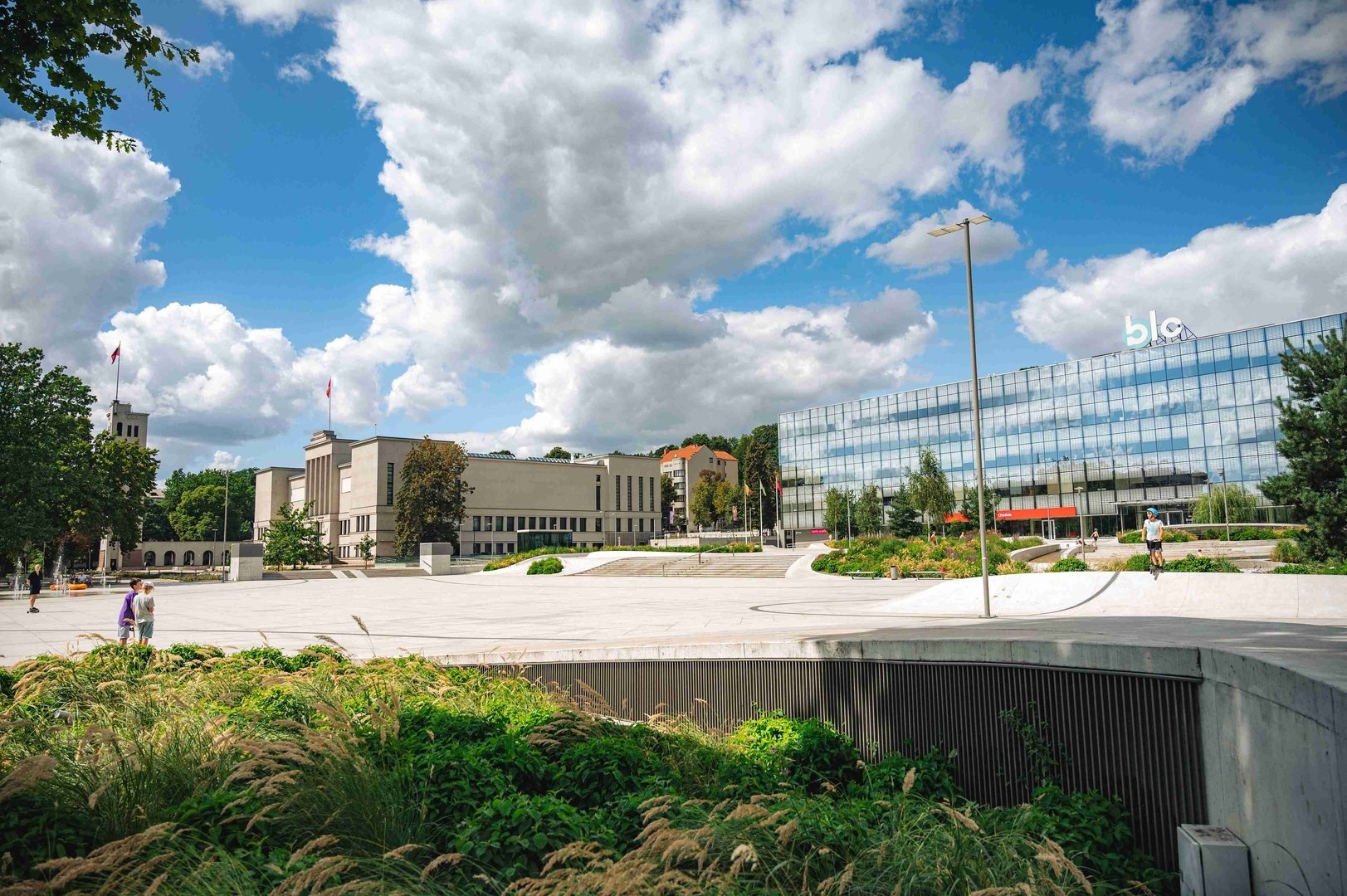 Unity Square is a symbol of modern architecture in Kaunas. This space is open to everyone – from skaters to families with children, seniors, and visitors to the city. The square is surrounded by cafes and restaurants, and on warm summer evenings, the dancing fountains add to the cozy ambiance. It also hosts various cultural events, concerts, and exhibitions, making it a popular spot for both entertainment and relaxation.
